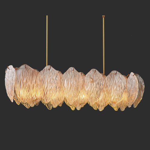 Each curve is meticulously shaped by artisan hands, harmonizing opulence with minimalist refinement through lu-minous glass layered over metal-lic/wooden bases. The multi-layered luminous refraction system diffuses ethereal, moonlit radiance, while ad-justable warm/cool lighting adapts to any ambiance. Sleek lines frame con-temporary artistry, reinterpreting Ba-roque motifs into modern patterns.