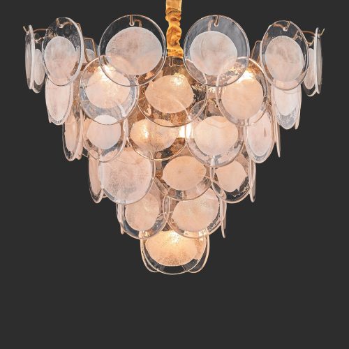 Each curve is meticulously shaped by artisan hands, harmonizing opulence with minimalist refinement through lu-minous glass layered over metal-lic/wooden bases. The multi-layered luminous refraction system diffuses ethereal, moonlit radiance, while ad-justable warm/cool lighting adapts to any ambiance. Sleek lines frame con-temporary artistry, reinterpreting Ba-roque motifs into modern patterns.