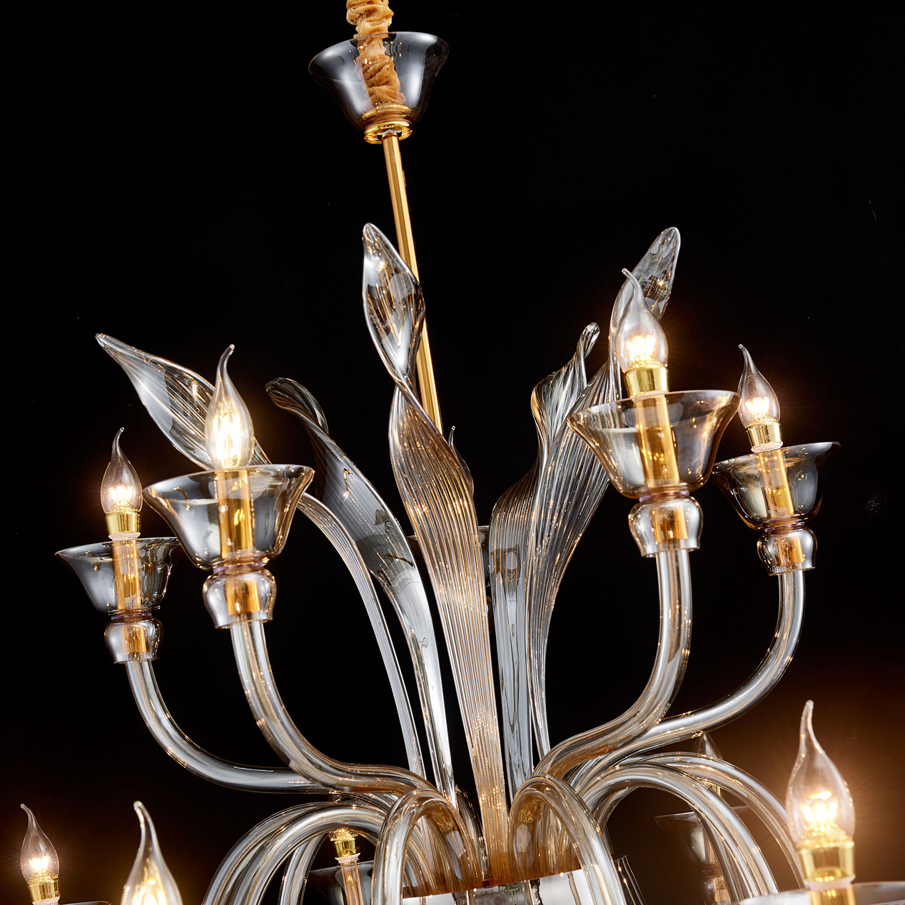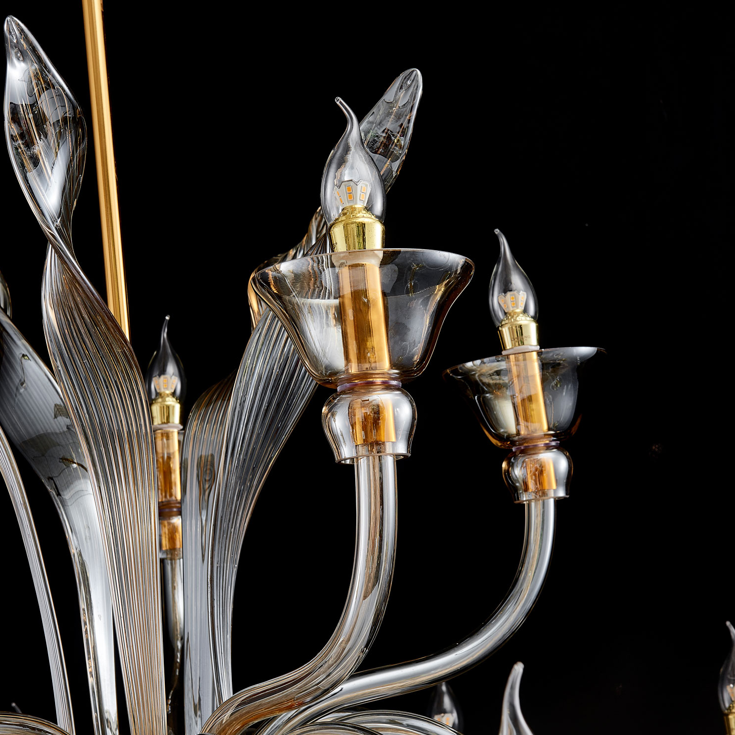 Made with traditional Murano glass-blowing techniques, each piece goes through 12 meticulous handcrafted steps: melting glass at high temperature → blowing into petal blanks → hand-painting green trim → assembling S-shaped transparent arms → annealing for reinforcement.
