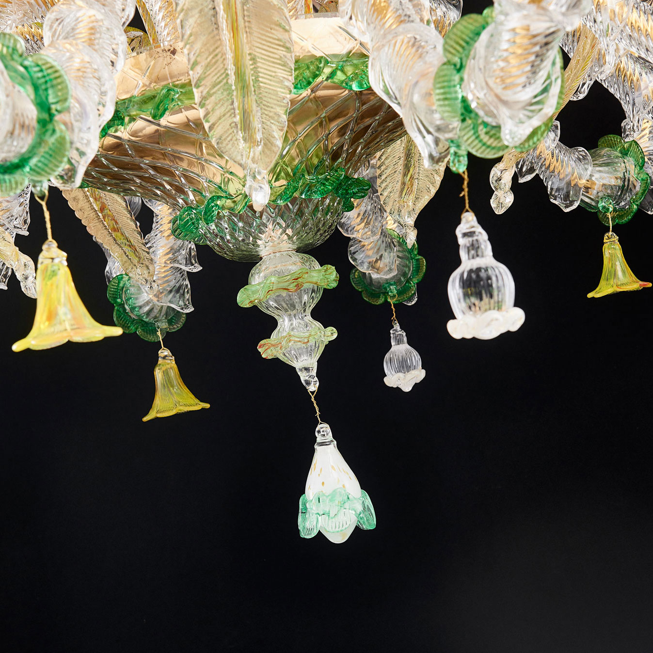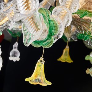 Lush green-edged petals meet transparent S-shaped layered arms — this handmade glass flower chandelier is a
