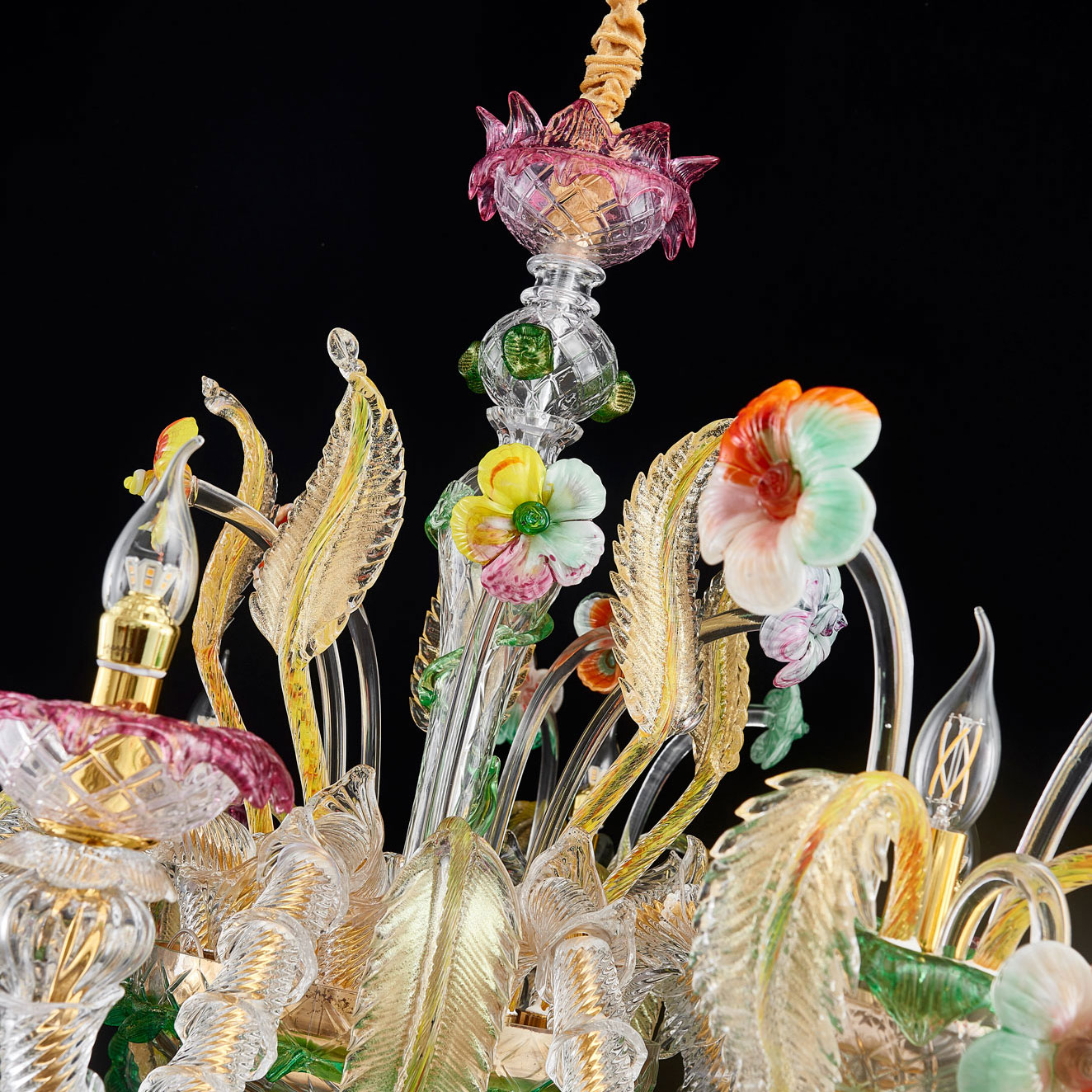 Made with traditional Murano glass-blowing techniques, each piece goes through 12 meticulous handcrafted steps: melting glass at high temperature → blowing into petal blanks → hand-painting green trim → assembling S-shaped transparent arms → annealing for reinforcement.