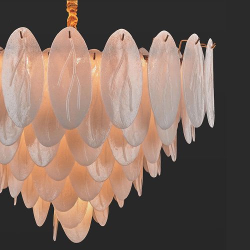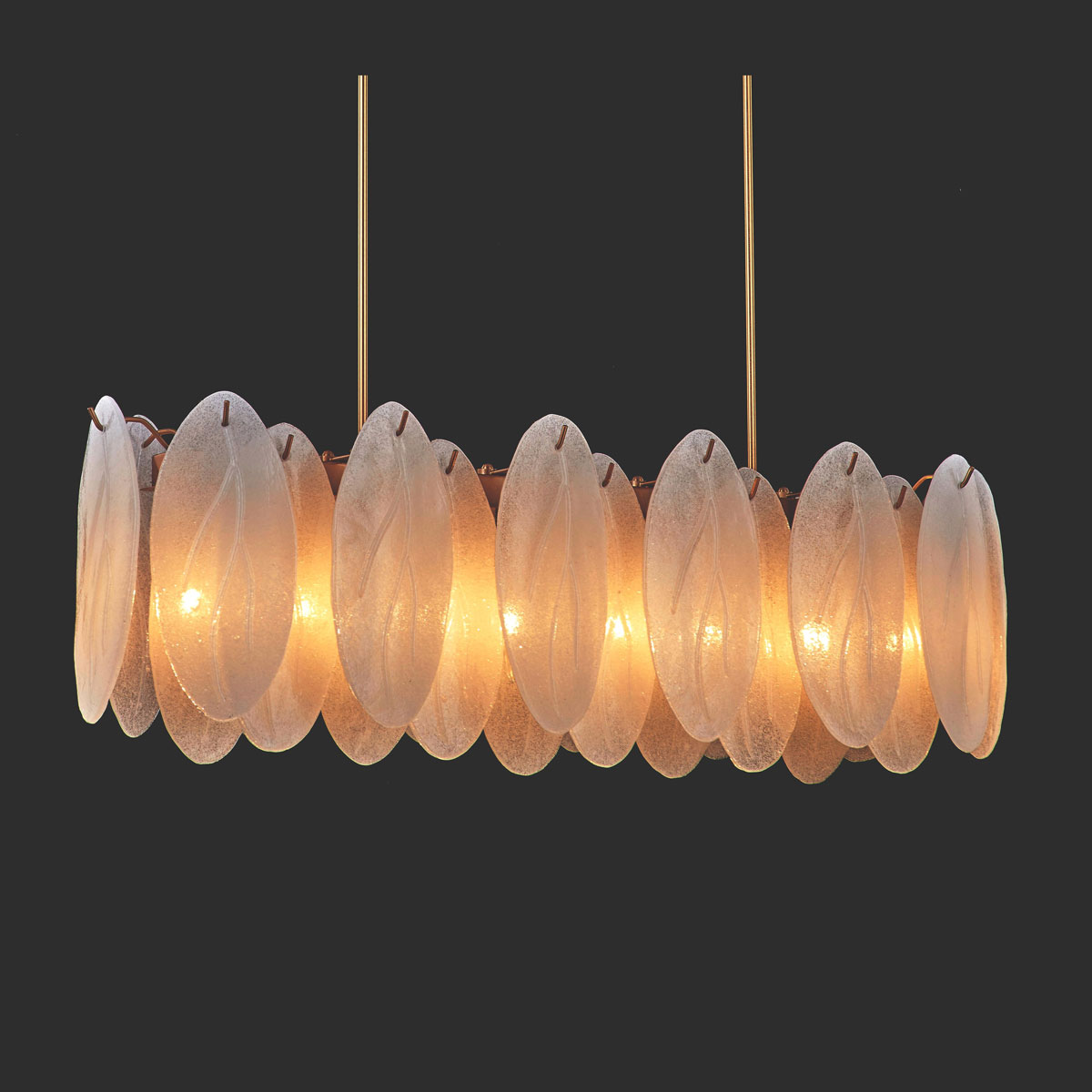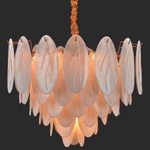 Each curve is meticulously shaped by artisan hands, harmonizing opulence with minimalist refinement through lu-minous glass layered over metal-lic/wooden bases. The multi-layered luminous refraction system diffuses ethereal, moonlit radiance, while ad-justable warm/cool lighting adapts to any ambiance. Sleek lines frame con-temporary artistry, reinterpreting Ba-roque motifs into modern patterns.