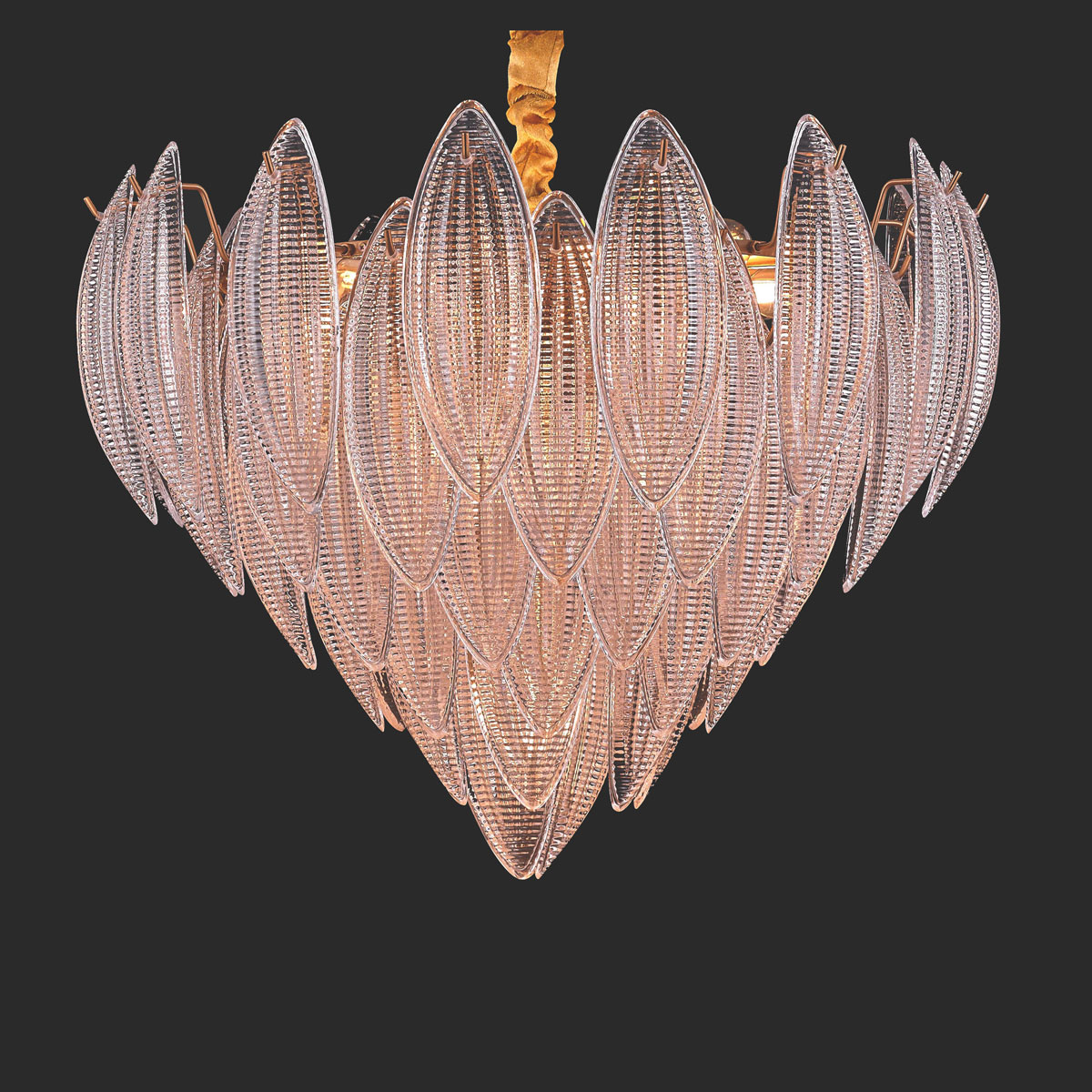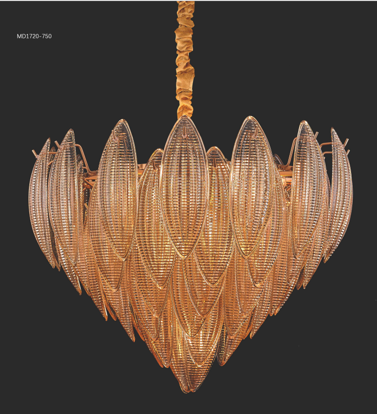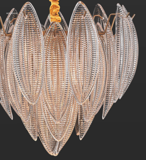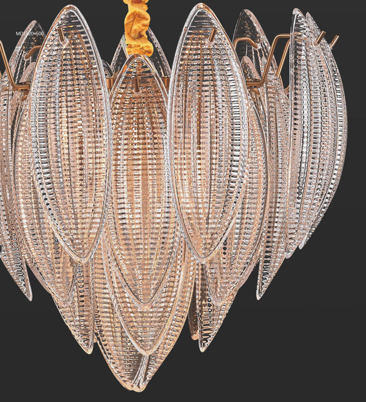 Each curve is meticulously shaped by artisan hands, harmonizing opulence with minimalist refinement through lu-minous glass layered over metal-lic/wooden bases. The multi-layered luminous refraction system diffuses ethereal, moonlit radiance, while ad-justable warm/cool lighting adapts to any ambiance. Sleek lines frame con-temporary artistry, reinterpreting Ba-roque motifs into modern patterns.