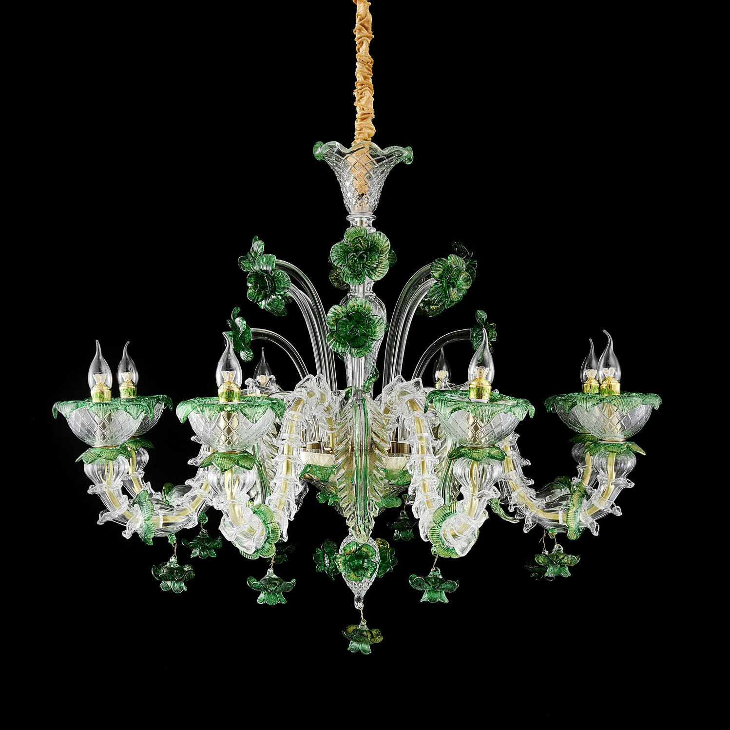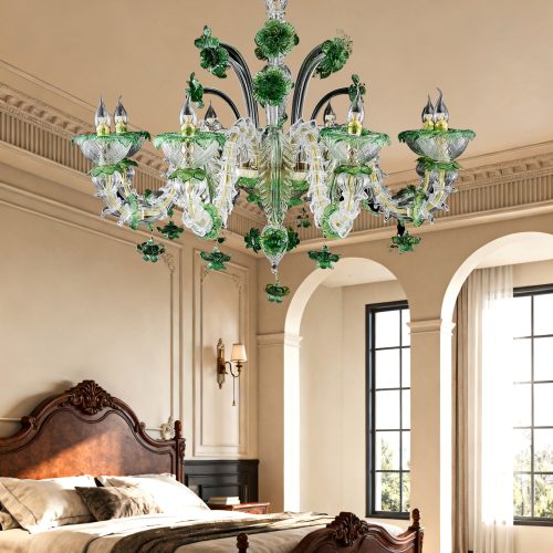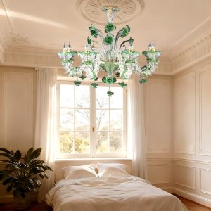 Want this green-trimmed glass chandelier to be the highlight of your project?